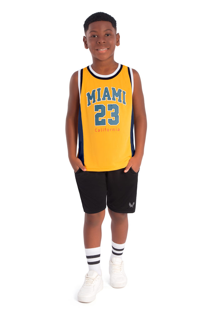 MACHÃO EM MEIA MALHA DRY COM ESTAMPA E RECORTES LATERAISCONTRASTE EM NEW PONTILHADO.