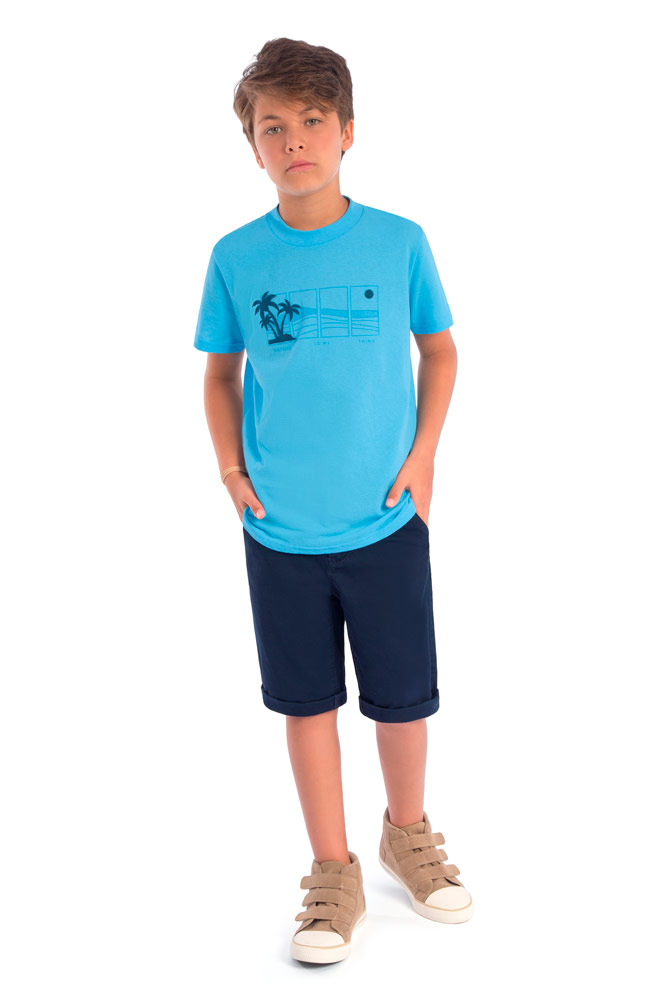 CAMISETA EM MEIA MALHA PIQUET COM ESTAMPA.