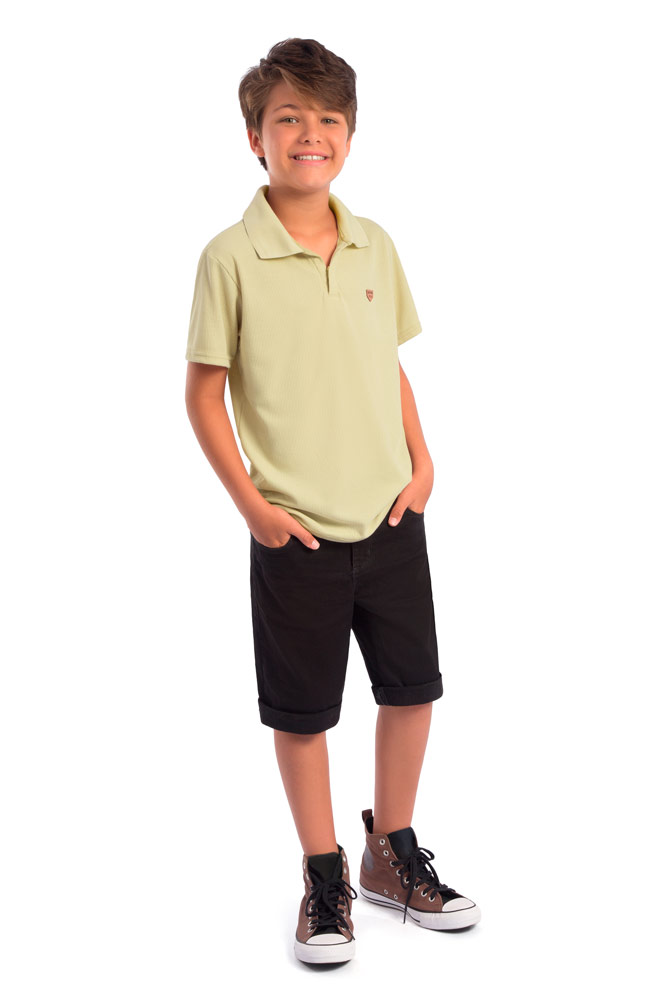 CAMISA POLO COM PEITILHO EM RIBANA TRABALHADA.