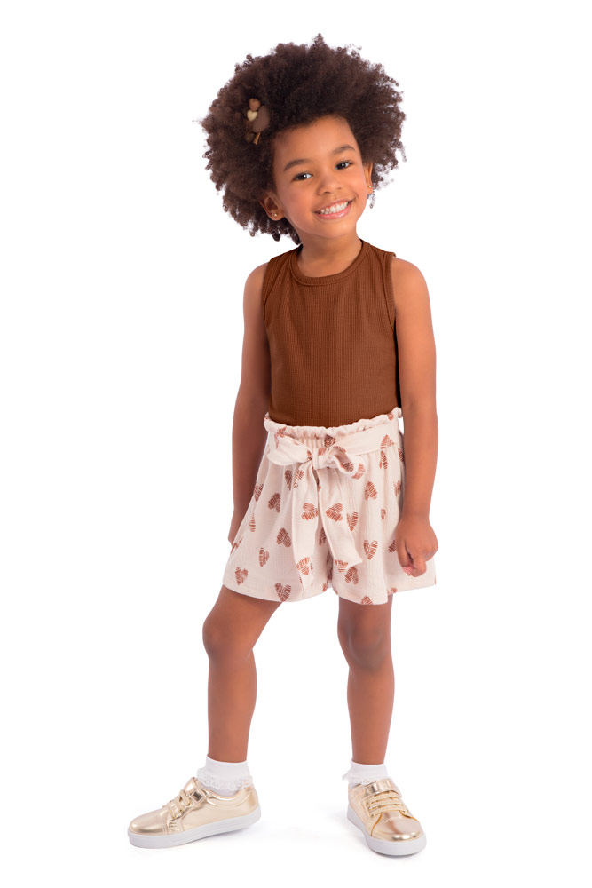 CONJUNTO REGATA EM RIBANA TRABALHADA E SHORT EM ANA RUGADUPLA ROTATIVA COM CÓS CLOCHARDE FAIXA PARA AMARRAÇÃO.